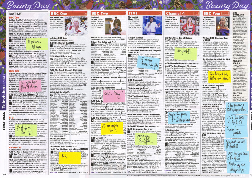 It’s my final selection of choices during the festive season from the double issue of the Radio Times. In truth, I’m not sure that anyone has really pulled the stops out for Christmas this year, perhaps saving their best stuff for New Year’s Day. Alternatively, the channels have decided that we’ll all be watching Stranger Things on Netflix (I bailed mid season 2, so definitely won’t be). There’s not even that much Premier League football on Boxing Day this year, with most matches on Saturday. But there are Afcon games across Channel 4’s various digital outposts.